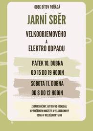 Obec Bítov pořádá jarní sběr velkoobjemového a elektro odpadu, který se uskuteční v pátek 10. dubna od 15 do 19 hodin a v sobotu 11. dubna od 8 do 12 hodin.
