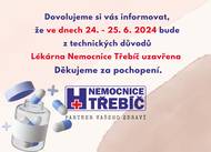 Ve dnech 24. - 25. 6. 2024 bude Lékárna Nemocnice Třebíč uzavřena.