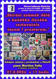 Obecní knihovna Blažovice pořádá ve dnech 27. 2. až 29. 3. 2026 ve Spolkovně prodejní výstavu poštovních známek. Zahájení výstavy s přednáškou o filatelii pana Martina Folty se uskuteční 27. 2. v 17 hodin.