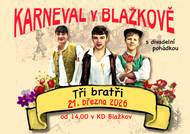 Srdečně Vás zveme na Karneval v Blažkově s divadelní pohádkou Tři bratři. Akce se koná 21.3. od 14,00 v KD.
