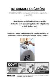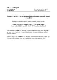 Termíny jedlé oleje: 10.3., 9.6., 8.9., 8.12. 2026 Termíny sklo: 10.2., 5.5., 28.7., 20.10. 2026