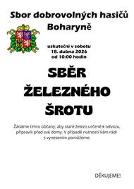 Sběr se uskuteční v sobotu 18.4. od 10 hodin. Staré železo k odvozu připravte před své domy. Sběr probíhá pouze v obcích Boharyně a Homyle.