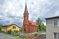 Jednolodní orientovaná stavba z režného zdiva na obdélném půdorysu s polygonálním závěrem. V ose průčelí vysoká věž a po severní straně objektu přístavek sakristie.