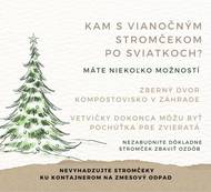 V piatok 9. januára sa uskutoční zber živých vianočných stromčekov. Stromčeky treba vyložiť ráno do 7:00 hod. na viditeľné miesto pred dom a zbaviť všetkých ozdôb.