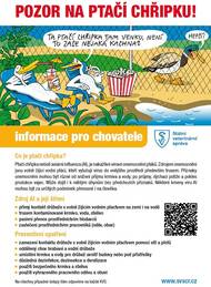 Státní veterinární správa žádá o spolupráci. Hlášení nálezu nemocných, umírajících, zraněných nebo uhynulých ptáků na místně příslušnou krajskou veterinární správu, která zajistí odběr vzorků a jejich transport do laboratoře. Z bezpečnostních důvodů se nedotýkejte a ani nijak nemanipulujte s nemocnými nebo mrtvými ptáky. Pokud je to možné, zamezte vstupu dalších osob na místo nálezu. V případě nálezu ptáka podezřelého z otravy je třeba kontaktovat Policii ČR. Bližší informace v přiložených dokumentech a na https://www.svscr.cz/zdravi-zvirat/ptaci-chripka-influenza-drubeze/ptaci-chripka-v-cr/