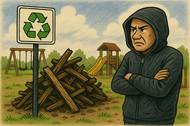 Skládka dřevěného odpadu u hřiště