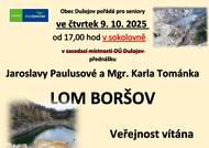 Paní Vlasta Dvořáková se rozhodla podat prezidentu České republiky panu Petru Pavlovi návrh na udělení Medaile Za zásluhy v oblasti kultury paní Mgr. Jaroslavě Paulusové. Jelikož mnozí z Vás paní učitelku dobře znáte, učila Vás, Vaše děti nebo naopak rodiče a napsala krásné knihy o obcích z našeho regionu (samozřejmě i o naší obci - "Boršov v minulosti i současnosti") máte možnost návrh podpořit svým podpisem. Podpisový arch je k dispozici u pana starosty Zdeňka Kosa do neděle 4. 5. 2025. Bližší informace o návrhu v přiloženém souboru, popř. na tomto odkazu.