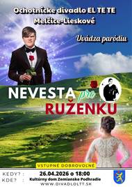 Divadlo EL TE TE Vás pozýva na svoje predstavenie 26.4.2026 o 18:00 hod. do KD Zemianske Podhradie.