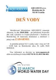 S blížiacim sa Svetovým dňom vody 2026 sme pripravili v našom akreditovanom laboratóriu vrámci služby občanom akciu na rozbor pitnej vody. (Stanovenie dusitanov a dusičnanov zdarma alebo rozšírený rozbor za akciovú cenu). AQUASECO s.r.o. Pracovisko:Bratislavská 36 911 05 Trenčí