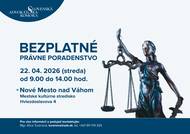 Bezplatná právna pomoc 22.04.2026 (okr. Nové Mesto nad Váhom) 9:00 - 14:00 hod.
