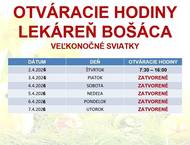 Vedúca lekárne v Bošáci informuje občanov a návštevníkov, o otváracích hodinách počas Veľkonočných sviatkov . Ďakujeme za pochopenie.