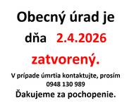 Dňa 2.4.2026 (štvrtok) bude Obecný úrad v Bošáci z technických príčin ZATVORENÝ. Ďakujeme za pochoprenie.