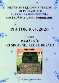 Pozvánka - pietny akt kladenia vencov - piatok 10.4.2026 / 10:00 pamätník pri Spojenej škole v Bošáci