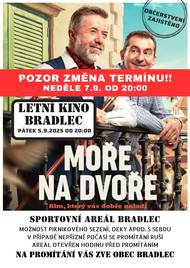 Do neděle 10. srpna bylo možné hlasovat o výběru filmu pro letošní letní kino ve sportovním areálu v Bradlci a nyní vám přinášíme výsledky hlasování: Moře na dvoře - 65% Bridget Jonesová Láskou šílená - 25% Jak se nám to mohlo stát!? - 8% Léto s Evženem - 2% Děkujeme za hlasování a těšíme se na promítání výherního filmu, které se bude konat v pátek 5. září od 20:00 hod.