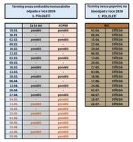 Od 1.1.2026 jsou svozy směsného komunálního odpadu (popelnice) platné dle tabulky uvedné níže. Platnost známek z roku 2025 (do konce února) umožňuje vývoz 1x za 14 dnů dle nových podmínek.