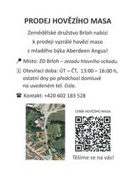 Zemědělské družstvo Brloh nabízí k prodeji hovězí maso z býka Aberdeen Angus.