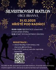 Vážení spoluobčané, 🏃♂️🔫 4. SILVESTROVSKÝ BIATLON BRANNÁ 🔫🏃♀️ Chcete zakončit rok sportovně? Přijďte si zazávodit! Obec Branná zve všechny sportovní nadšence na tradiční silvestrovský biatlon. 📅 31. 12. 2025 📍 Hřiště pod radnicí, Branná ⏱ Program: 10:00–11:00 – prezentace závodníků & instruktáž střelby 11:15 – start rychlostního závodu 🏃♀️ Závod dle upravených pravidel biatlonu 👟 Bez lyží – běží se v botech 🔫 Střelba pod dohledem instruktorů 📝 Registrace: e-mailem: starosta@branna.eu nebo na místě (do naplnění kapacity) Přijď si zazávodit, zapotit se a zakončit rok 2025 ve sportovním tempu 💪 Diváci vítáni!