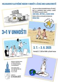 MELICHAROVO VLASTIVĚDNÉ MUZEUM v Unhošti a Česká unie karikaturistů zvou na výstavu kresleného humoru, kde se představí tři úspěšní autoři a slovenský host. Výstava proběhne od 3. července do 3. srpna 2025.