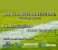 Přátelské fotbalové utkání FK Hanušovice - Sokol Bratrušov, neděle 23.2.2025 od 17,00 hod na umělé trávě v Šumperku. Dětský maškarní karneval - sobota 1.3.2025 od 15,00 hod v KD v Bratrušově. Zdraví Obec Bratrušov