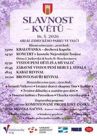 Slavnost květů se koná 16. května 2026 od 13:00 do 20:00 hod. v areálu zámku. Program zahrnuje vystoupení dechových kapel, koncerty, zábavní akce a tvořivé dílničky pro mladé. Kromě kulturního programu budou probíhat i komentované prohlídky zámku.