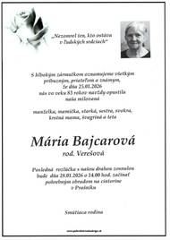 Smútočné oznámenie - Mária Bajcarová, rod. Verešová