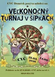 CVČ Domček pozýva mládež na Veľkonočný turnaj v šípkach. CVČ 31. 3. 2026, 14.00 hod.