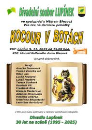 Divadelní soubor LUPÍNEK ve spolupráci s městem Březová vás zve na derniéru pohádky KOCOUR V BOTÁCH v neděli 9. listopadu od 15:00 hod. do kinosálu KD Březová. Vstupné je dobrovolné.