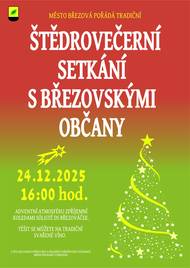 Město Březová pořádá tradiční ŠTĚDROVEČERNÍ SETKÁNÍ S BŘEZOVSKÝMI OBČANY dne 24. prosince 2025 od 16:00 hodin před radnicí. Adventní atmosféru zpříjemní koledami sólisté DS BŘEZOVÁČEK. Těšit se můžete na tradiční SVAŘENÉ VÍNO. Těšíme se na Vás!!!