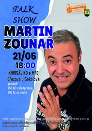 TALKSHOW MARTINA ZOUNARA Martin Zounar je český herec, dabér a moderátor, známý především díky roli dr. Bohdana Švarce v seriálu Ordinace v růžové zahradě 2 a jako mladý voják Tomáš v seriálu Chlapci a chlapi. Je synem herce Miroslava Zounara. Kromě divadla se věnuje i dabingu. Prodej bude zahájen 9. 2. 2026. Vstupné: v předprodeji 250 Kč, na místě a v den akce 300 Kč. Změna programu vyhrazena.