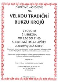 Zelenina Juvita Uherský Brod bude v pátek 6. 3. od 11:40 do 12:00 hod. prodávat certifikované sadbové brambory z Vysočiny od 18Kč/kg, cibuli 16Kč/kg, jablka 25Kč/kg, konzumní brambory 12Kč/kg, česnek, cibuli sazečku a další ovoce a zeleninu. Dále nabízí žampiony, hlívu ústřičnou, čalamádu, olejové