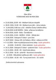 Co se bude dít tento rok v obci? Toto jsou naplánované akce, rezervujte si termíny a pojďte s námi oživit dění v obci. Každá pomocná ruka na akcích ve vřele vítána, stejně tak nové nápady, neváhejte přijít a zapojit se :-).