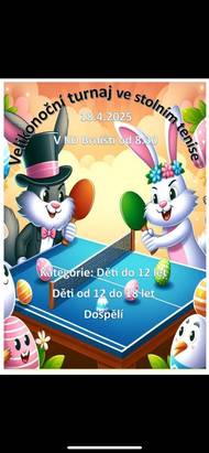 Stolní tenisté zvou všechny občany Brniště na Velikonoční turnaj ve stolním tenise dne 18. 4. 2025 v KD Brniště. Přihlášeni na místě od 8:30 do 9:00. Těší se na vás ST Brniště