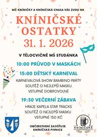 MČ Brno-Kníničky a Kníničská chasa, z. s. srdečně zve děti i rodiče v rámci Ostatkového veselí v Kníničkách na karneval pro děti, který se uskuteční v sobotu 31.1.2026 od 15 hod. v místní tělocvičně