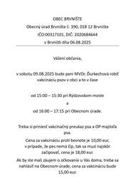 Vedúca pošty oznamuje občanom, že od 23.9.2025 do 26.9.2025 bude pošta Brvnište otvorená nasledovne: Utorok: 13.30-15.15 Streda: ZATVORENÉ Štvrtok:08.00-12.00 13.00-15.15 Piatok: 08.00-12.00