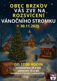 Srdečně Vás zveme na tradiční ROZSVÍCENÍ VÁNOČNÍHO STROMU u Kulturního domu v Brzkově v neděli 30. listopadu 2025 od 17:00hodin Program: ✨ Slavnostní rozsvícení vánočního stromu 🎆 Velkolepý OHŇOSTROJ 🎤 Vánoční vystoupení dětí ze ZŠ a MŠ Brzkov 🎄 Vánoční jarmark 🌟 Svařák, Přijďte s rodinou, přáteli i babičkami a dědou! Společně zahájíme adventní čas v Brzkově tak, jak to máme nejradši! Těšíme se na Vás! Obec Brzkov