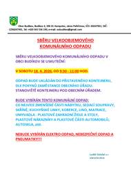 Sběr velkoobjemového komunálního odpadu proběhne v obci Budíkov v sobotu 18.4.2026 od 9:30 - 11:00 hod. Kontejner přistaven pod OÚ. Starosta