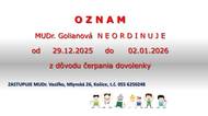 MUDr. Golianová neordinuje od 29.12.2025 do 2.1.2026