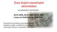 Živé vianočné stromčeky zbierame v čase od 10:00 hod. do 15:00 hod. v termínoch 22.1.2026, 29.1.2026 a 5.2.2026.