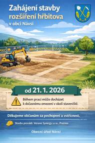Obec Návsí informuje, že dne 21. 1. 2026 byla zahájena stavba rozšíření místního hřbitova. Předpokládané ukončení je 270 dnů od zahájení stavby. Více informací viz plakát.