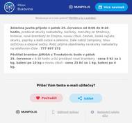 Řeznictví a uzenářství D-MASO Blažovice přijede zítra ve 13 hodin prodávat čerstvé kuřecí, vepřové a hovězí maso, uzeniny, uzená masa a speciality. Prodejna Oříšek-Jede bude zítra od 13 hodin prodávat bohatý sortiment ořechů, suchých plodů, sušeného ovoce a cukrovinek. Žádáme občany, kteří doposud neprovedli platbu za odběr vody, aby úhradu uskutečnili v nejbližší době. Předem děkujeme.