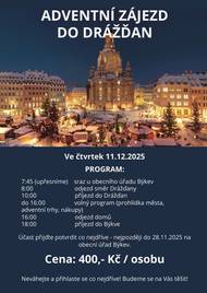 OÚ Býkev pořádá zájezd na Adventní trhy do Drážďan ve čtvrtek 11.12.2025