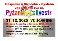 Obecní hospůdka U Divočáka Vás srdečně zve na silvestrovský večer. Začátek ve 20 hodin, vstupné 700,-Kč dospěly, 350,-Kč děti. V ceně vstupného je celovečerní raut, přípitek (pro děti nealko) hudební produkce v podání L. Hvězdy. Děti budou mít v salonku herní koutek (X-BOX, stolní hry apod.). Celý večer se ponese v duchu pyžamové párty - tedy pyžamo vítáno. Pití si platí každý sám. Předprodej vstupenek je možný přímo v hospůdce v době otevírací doby.