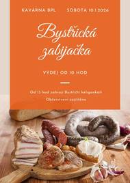 Tradiční Bystřická zabijačka se uskuteční v kavárně BPL v sobotu 10. ledna 2026. Výdej jídel začne již v 10 hodin a od 13 hodin zahrají Bystřičtí heligonkáři, kteří zpříjemní den svým vystoupením. Občerstvení je zajištěno.
