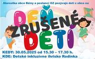 Starostka obce Bziny a poslanci OZ pozývajú všetky deti z obce na DEŇ DETÍ. KEDY:30.05.2025 od 15.30h do 17.30h. KDE: Detské inkluzívne ihrisko Rodinka