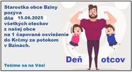 Starostka obce pozýva dňa 15.06.2025 všetkých oteckov z našej obce na jedno čapované osvieženie do Krčmy za potokom v Bzinách