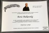 S hlbokým zármutkom oznamujeme príbuzným, priateľom a známym, že dňa 7.1.2026 nás navždy opustil náš občan Boris Balkovský vo veku nedožitývh 67 rokov. Rozlúčka so zosnulým Borisom Balkovským bude v pondelok 12.1.2026 o 10:00 hod. v krematóriu v Banskej Bystrici.