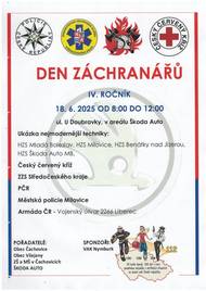 Zveme Vás na IV. ročník DNE ZÁCHRANÁŘŮ, pořádaný dne 18.6.2025 od 8:00 do 12:00 v areálu Škoda auto. Čeká Vás ukázka nejmodernější techniky, včetně odborného výkladu a ukázky zásahu. Akce je určena pro základní a mateřské školy, ale i širokou veřejnost.