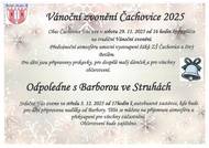 Obec Čachovice Vás srdečně zve na předvánoční akce. První se uskuteční dne 29. 11. 2025 od 16:00 u kapličky v Čachovicích, druhá pak 3. 12. 2025 od 17:00 u autobusové zastávky ve Stuhách.