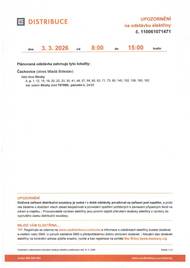 Dne 25. 2. 2026 dojde v části obce Čachovice k plánované odstávce elektřiny v čase od 7:30 do 12:00 a od 12:00 do 15:00. Přesná čísla popisná, kterých se odstávka týká, jsou uvedena v příloze.