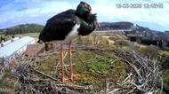 Hranice (Přerovsko) - Luxusní sedmnáctimetrové čapí hnízdo v Hranicích na Přerovsku, které z ocelových plátů vytvořil sochař Jan Dostál, má už prvního nájemníka. Na vrcholu plastiky se uhnízdil dlouho očekávaný čáp v sobotu. Od té doby tak sedí na hlavě svého dvojníka, rozměrné sochy čápa o hmotnosti 15 tun. Díky jeho příletu si oddechli hlavně majitelé sochy, která nahradila jeho původní hnízdiště v podobě železobetonového sloupu. Čáp je totiž symbolem Hranic, přilétá tam každoročně už více než sto let.